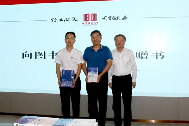魏一鳴向圖書館、校史館贈送了新出版的《北京理工大學志(第三卷)》(2006-2019)和《學科專業史叢書》。