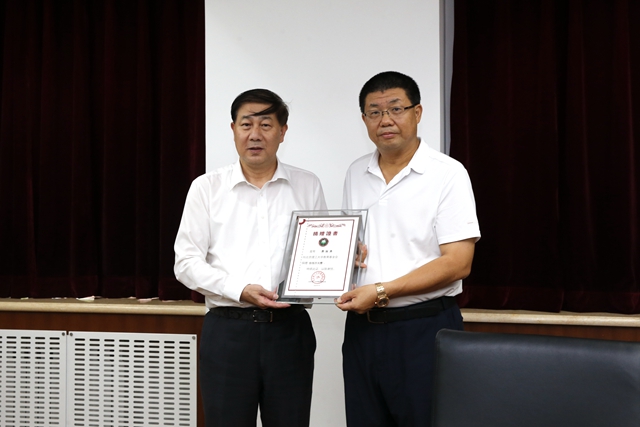 項昌樂代表學校向費振勇校友頒發捐贈證書、贈送紀念品。