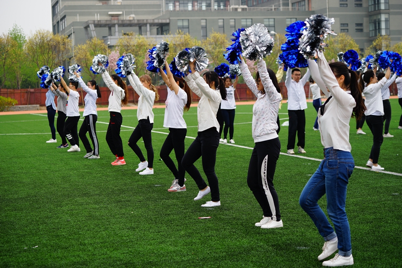 “4月8日我們組織了一場(chǎng)參演學(xué)院間的分隊(duì)比賽,各支隊(duì)伍的表現(xiàn)都很好。”為了提高團(tuán)隊(duì)表演的默契和整體水平,每個(gè)周末,王娟老師都會(huì)趕往良鄉(xiāng)校區(qū)體育場(chǎng),組織同學(xué)們進(jìn)行集體練習(xí)。