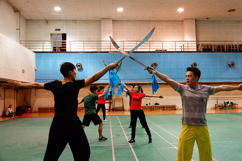 在選擇開幕式表演項(xiàng)目上,武術(shù)隊(duì)沒有采用一貫的集體劍術(shù)套路,而是表演一套全新編排的集體刀術(shù)。“北理工在集體劍術(shù)上的實(shí)力有目共睹,這次選擇刀術(shù)表演對(duì)于我們來說是一個(gè)突破。”為了更好地展現(xiàn)武術(shù)隊(duì)的刀術(shù)實(shí)力,在編排套路的階段,張老師跟領(lǐng)武術(shù)隊(duì)的同學(xué)在動(dòng)作編排上下足了功夫,甚至經(jīng)常在晚上和周末加練。