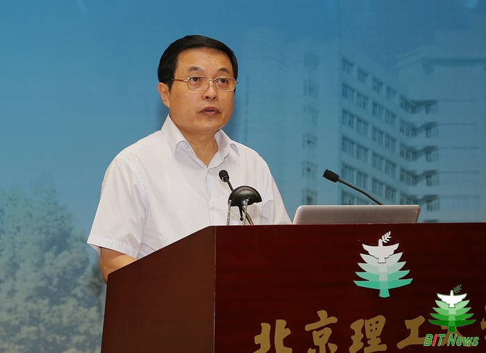 校長胡海巖代表學校講話。他首先代表北京理工大學全體師生員工,向出席大會的各位校友表示熱烈的歡迎,向全校師生員工和全體校友致以節日的祝賀。他表示學校堅持以建設世界一流理工大學為目標,實施“6+1”發展戰略,在學科專業水平、師資隊伍實力、人才培養體系、科技實力和水平、國際辦學格局、辦學基本條件、制度和文化建設方面均取得重要進展。胡海巖指出,學校第十四次黨代會提出分步走發展目標,到2020年,學校發展成為亞洲一流理工大學,到2040年,學校建設成為世界一流理工大學。他希望全體師生員工、廣大海內外校友,戮力同心,攜手并進,一起傳承北理工的優秀品格,合力書寫北理工新的故事,共同鑄就北理工新的輝煌!