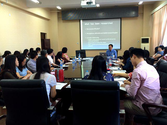8月28日,第八場學術講座在外國語學院舉行。講座由外國語學院協辦,邀請了倫敦大學學院教育系語言中心主任、知名教授李嵬院士作了系列講座,主題分別為“English LanguageTeaching (ELT) in the era of globalization(全球化背景下的英語語言教學)”和”Early Acquisition of English as a second language(英語作為第二語言的早期習得)”的報告。李嵬教授在“English LanguageTeaching (ELT) in the era of globalization(全球化背景下的英語語言教學)”的講座中為我們講解了全球化進程對英語語言教學的影響以及在此背景下英語教學和研究的關鍵點,還介紹了他提出的 “translanguage” 的概念和相關研究。在”Early Acquisition of English as a second language(英語作為第二語言的早期習得)”的講座中李嵬教授通過研究實例講解了兒童習得第二語言的歷史、研究現狀和未來發展方向等內容。講座內容代表語言學跨學科研究取得的最新進展,同時和大家的外語學習密切相關,講座中李嵬教授舉出了一些實際案例使得整個講座生動有趣。