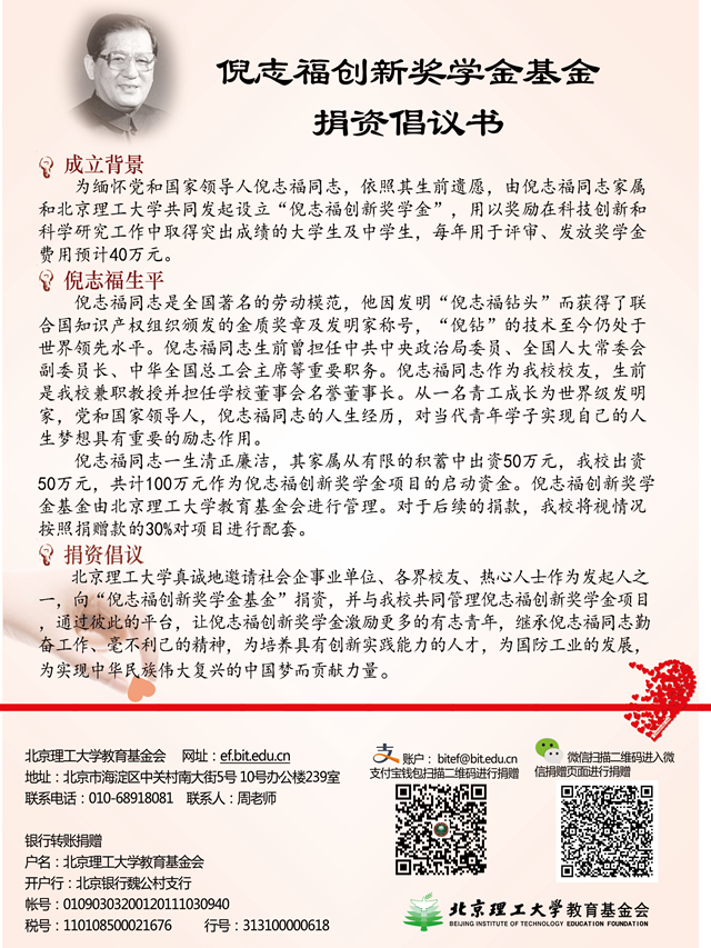 獲取更多信息,請(qǐng)關(guān)注官方微信平臺(tái)“北京理工大學(xué)教育基金會(huì)”(BITEF2010)。