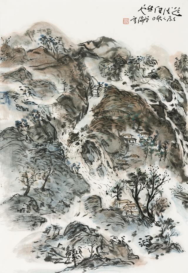 幾十年來他爬山涉水,哪里有名山,哪里有秀水,哪里有大川,哪里就有趙學倫的影子。走遍全國只為超越自我,只為創作一幅幅賞心悅目的作品。這正應了王安石一句“而世之奇偉、瑰怪、非常之觀,常在于險遠,而人之罕至焉,故非有志者不能至也。”盡管已經退休,趙先生亦不放棄,仍然堅持親自實地取材作畫,難怪耳順之年的歲月并沒有在先生的臉上刻有過多的痕跡。相反,他展現出的是四十而不惑的風華正茂,這或多或少都與他年輕的心態有關,只有積極向上的人生才能時刻展現給人們一種不凡的精神面貌。